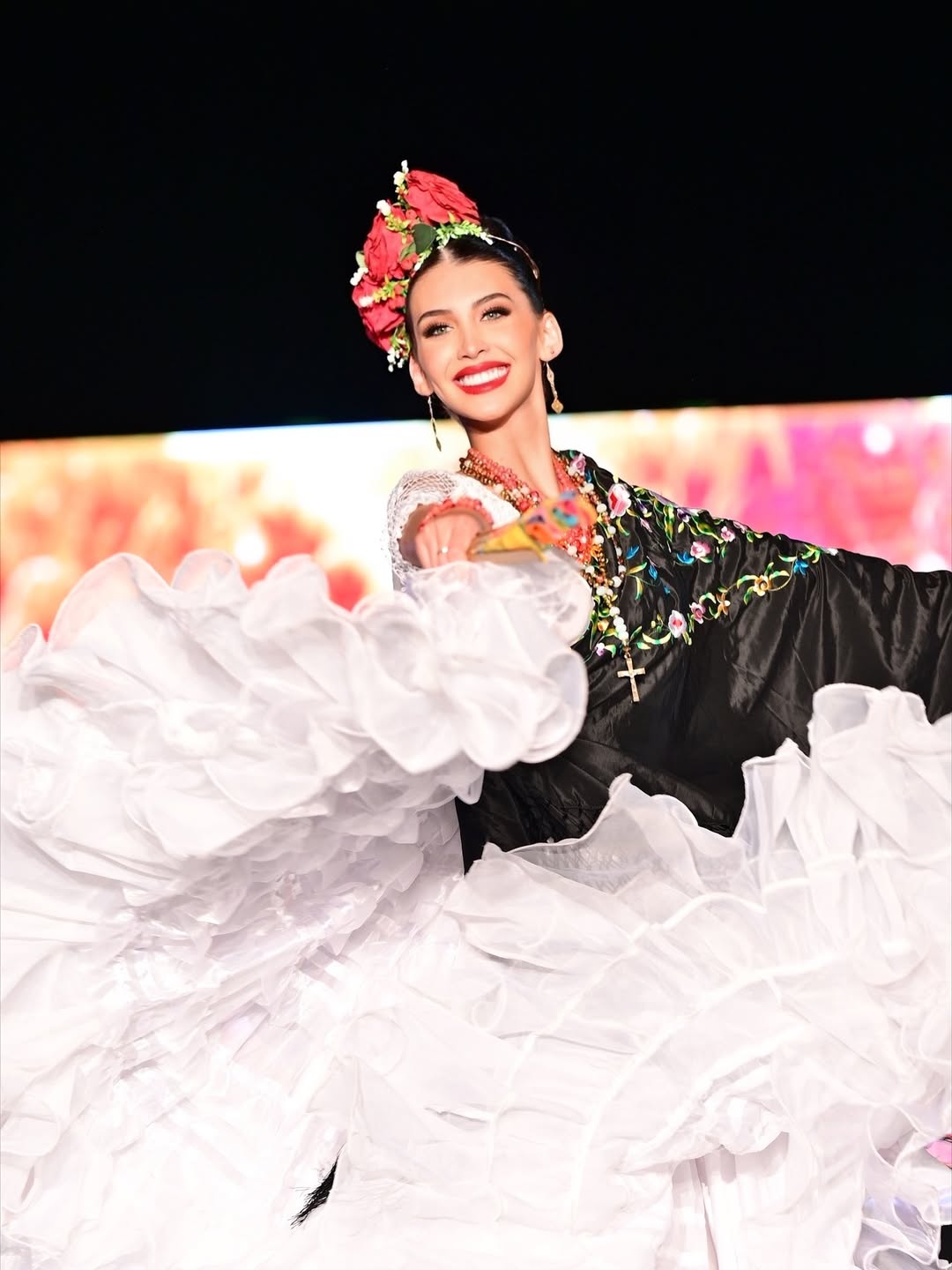 “Con garra y dulzura guaraní, ayer (por el domingo) estuvimos en la pasada de trajes alegóricos del Reina Hispanoamericana. Con toda la fuerza de la mujer paraguaya y nuestro hermoso folclore que lo llevó en el corazón”, dijo Jimena mostrando cómo lució en la competencia bailando una polca.