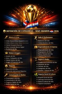 El mundo del entretenimiento y la cultura nacional se prepara para vivir una de las citas más esperadas del año con la llegada de los MAO Awards Paraguay, un galardón que busca reconocer a las personalidades más destacadas del país con proyección internacional. Esta premiación, impulsada por una organización internacional, apunta a visibilizar el talento