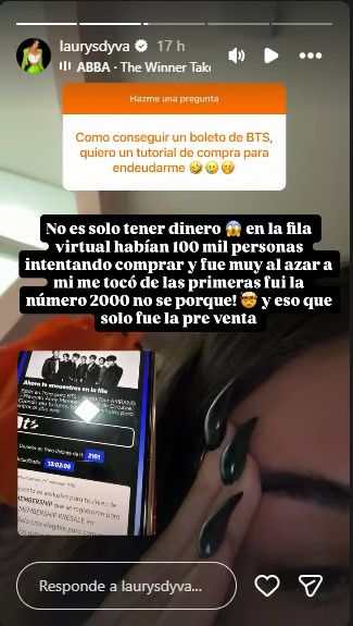 “En la fila virtual había 100 mil personas intentando comprar en la preventa y fue muy al azar. A mí me tocó de las primeras y fui la número 2000”, comentó la cuerona que está feliz con ir a ver a la banda de K-Pop.